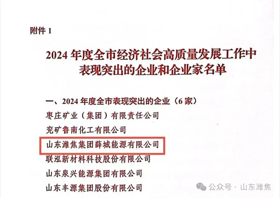 薛城能源公司榮獲“高質(zhì)量發(fā)展工作突出企業(yè)”榮譽稱號